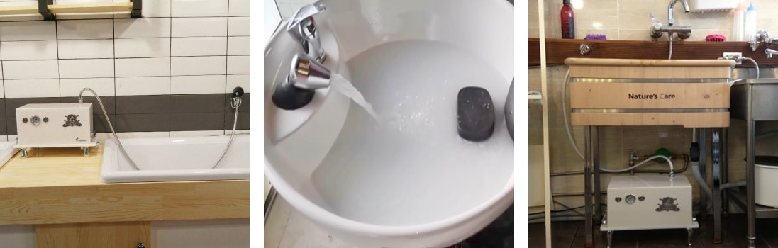 본 제품은 수전에서 나오는 미온수가 스파기계를 통해서