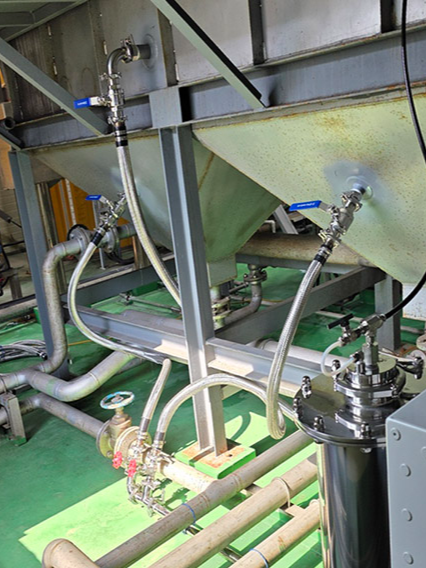 천공된 연결부에는 볼밸브와 SUS 후렉시블 호스를 이용하여