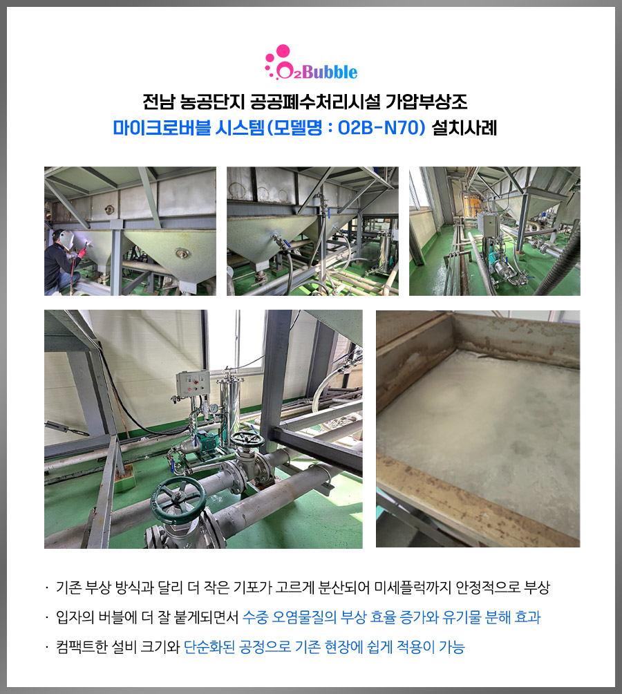 - 산소, 오존, 공기 등 다양한 기체를 초미세 기포로 용해 가능