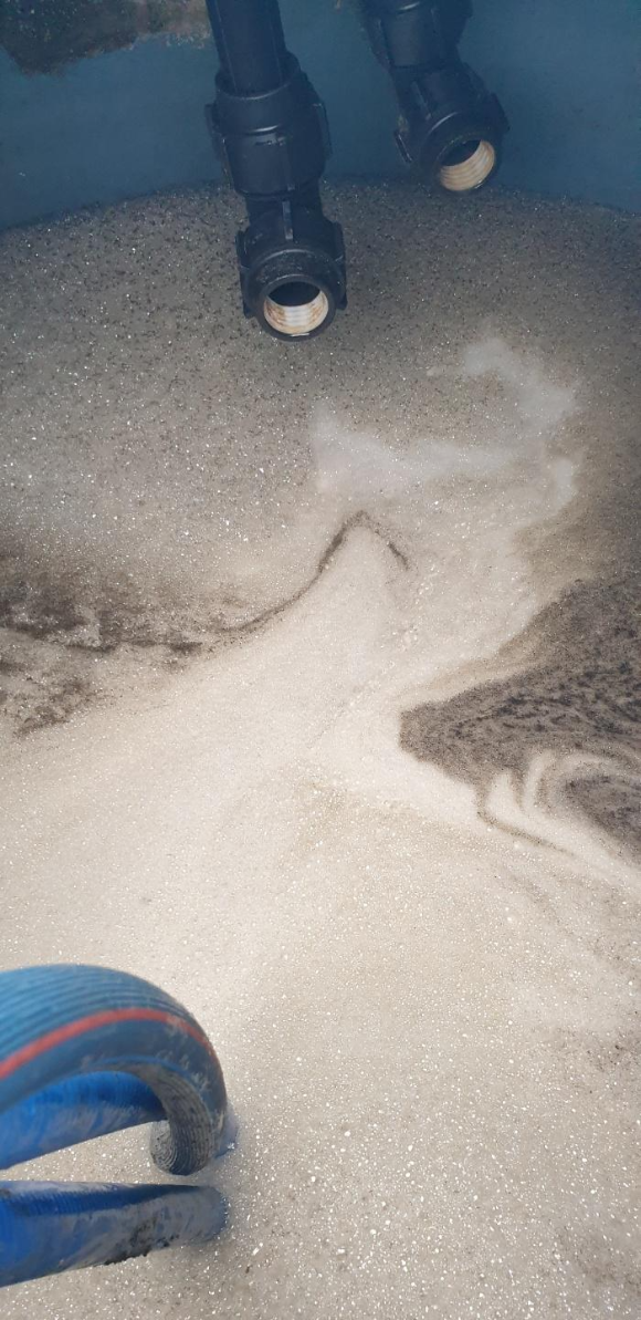 PE 탱크에 모인 오염수(오염물질)와
